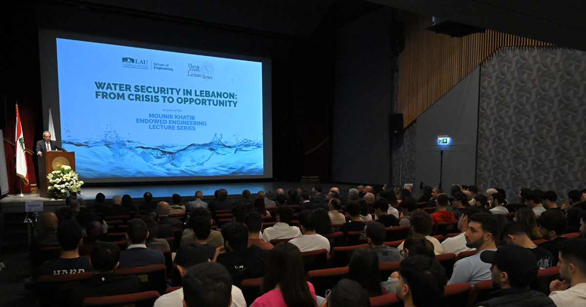 نظمت كلية الهندسة في الجامعة اللبنانية الاميركية (LAU) برعاية وحضور وزير الطاقة والمياه جو صدي، وضمن سلسلة ”محاضرات منير الخطيب الهندسية“ ندوة ”الامن المائي في لبنان: من الازمة الى الفرصة“. وحضر الى جانب الوزير كل من نائب رئيس مجلس الانماء والاعمار البر يوسف كرم، عائلة المهندس الراحل منير الخطيب، ممثلين عن شركة خطيب وعلمي، رئيس الجامعة شوقي عبدالله، عميد كلية الهندسة ميشال خوري وحشد من المهتمين بالقطاع والاساتذة وخريجي الكلية والطلاب.